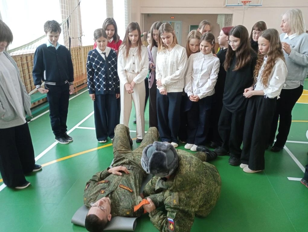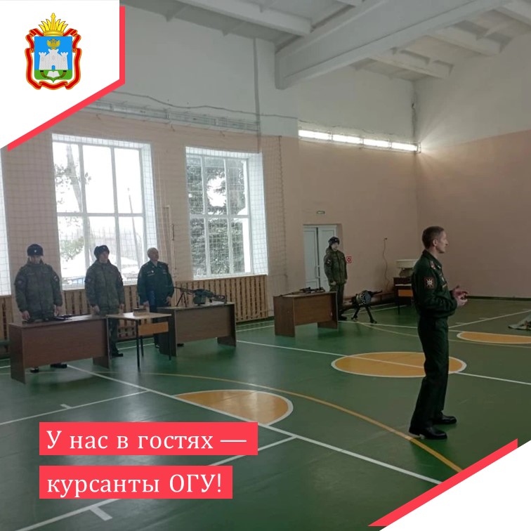 12 февраля наша школа превратилась в настоящую учебную базу! К нам приехали студенты ОГУ — курсанты Военного учебного центра при Орловском государственном университете им. И. С. Тургенева во главе с полковником Христофоровым Максимом Николаевичем, начальником Военного учебного центра и Дмитрием Александровичем Меркушевым, заведующим методическим кабинетом Военного учебного центра.