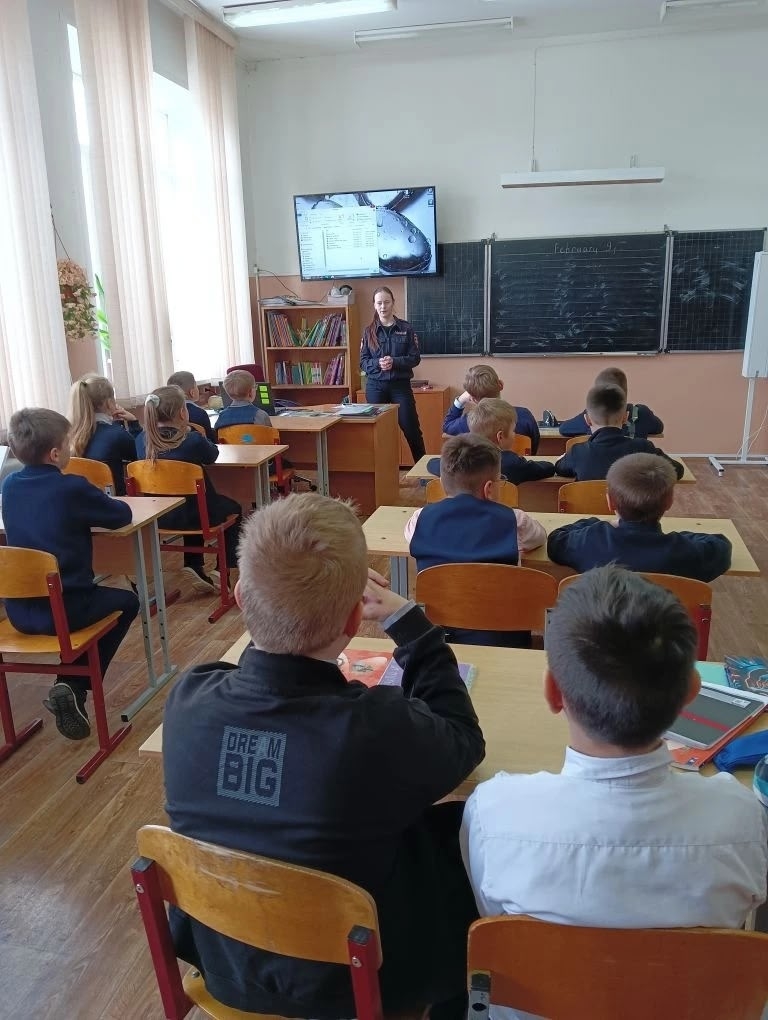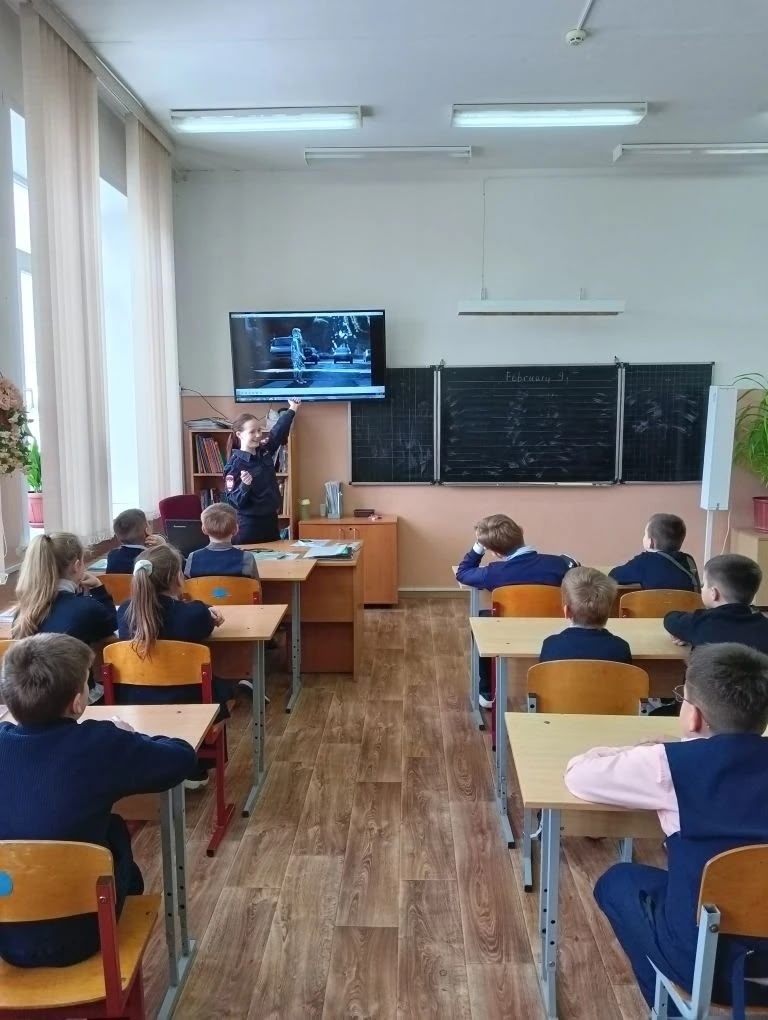 В рамках акции "Безопасность детства" к нам в школу приехал инспектор Госавтоинспекции отдела пропаганды, младший лейтенант полиции Евдокимова М. А.